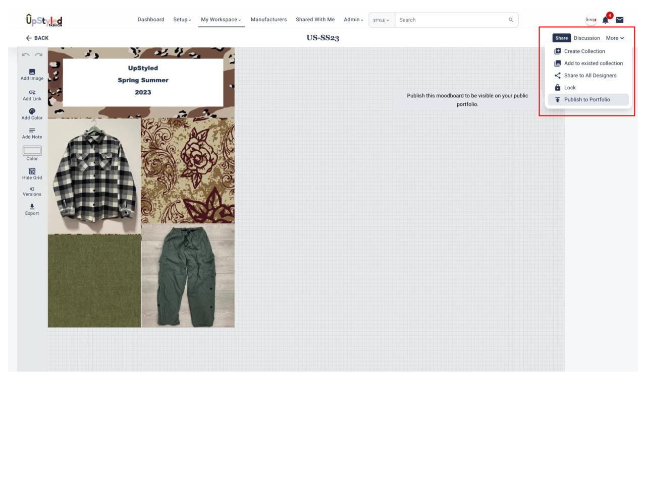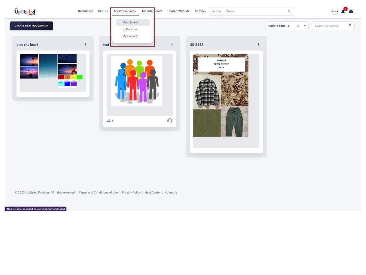 - Go to “My Workspace” on your main navigation bar, and select “Moodboard”