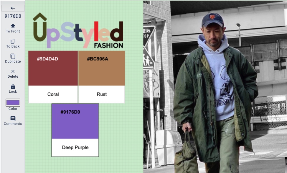Start by selecting “Add Color” in your toolbar, and find the eyedropper icon. Then, you will drag your eyedropper to a specific area of your moodboard, to copy its specific color. Once you’re satisfied with the color choice, just click on the area you would like to copy! The final step is giving your color a name/caption, and selecting “SAVE”.